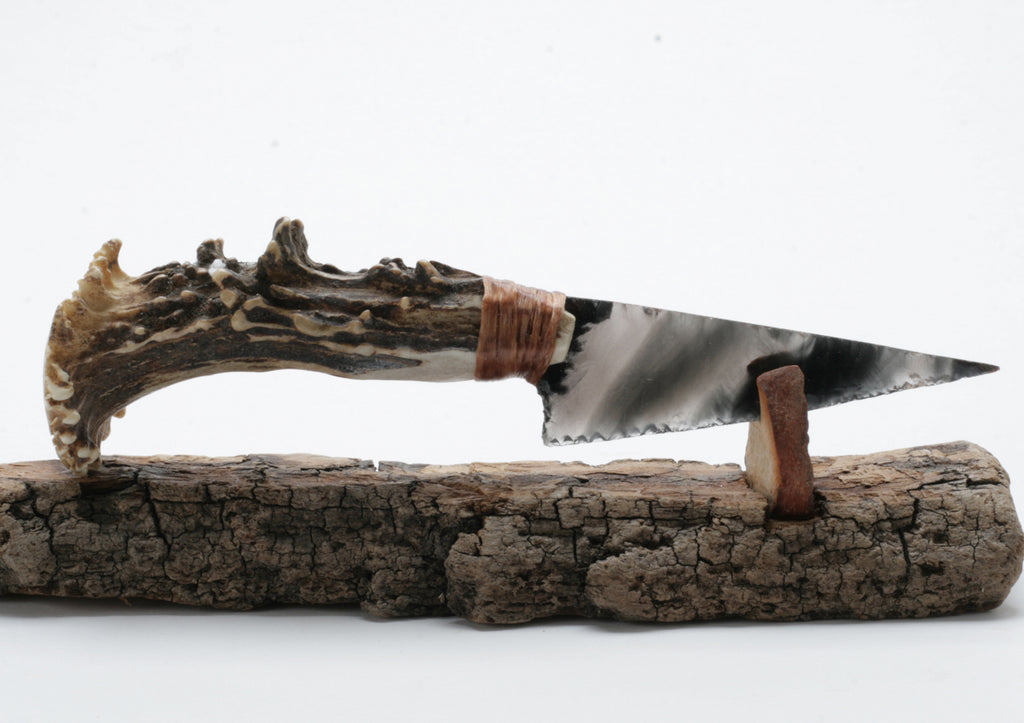 Rainbow Obsidian Stone Knife with Roe Deer Antler